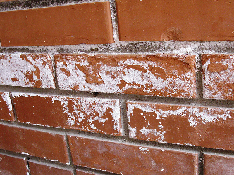 Это относится не только к тротуарной плитке, но и к стеновым материалам: особенно страдает облицовочный керамический кирпич (на его красно-коричневой поверхности солевые разводы выглядят наиболее насыщенно), а также искусственный и натуральный облицовочный камень. Высолы появляются в том случае, если внутри материала строительной конструкции есть влага, которая растворяет имеющиеся там соли, а при испарении выносит их наружу, где они и оседают на поверхности. Но проблема высолов имеет не только эстетический характер. Солевые кристаллы, по мере роста, приводят к разрушению лицевой поверхности кирпича или камня.