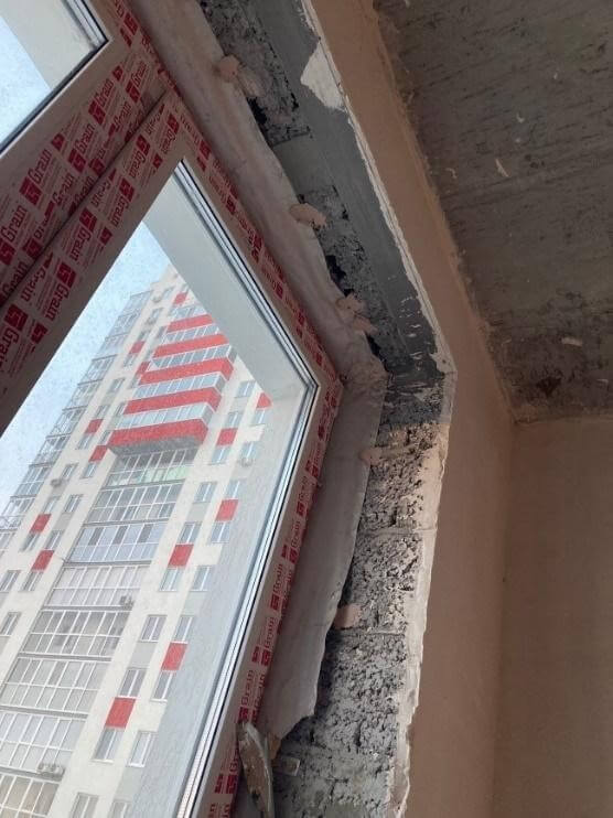 Кроме того, под лентой невозможно контролировать состояние монтажной пены. После её установки становится непонятно, насколько равномерно заполнен зазор, есть ли трещины, каверны или участки, где пена отошла от стенового проема (рис. 11). Такие дефекты легко пропустить, так как визуальный контроль полностью исключен.